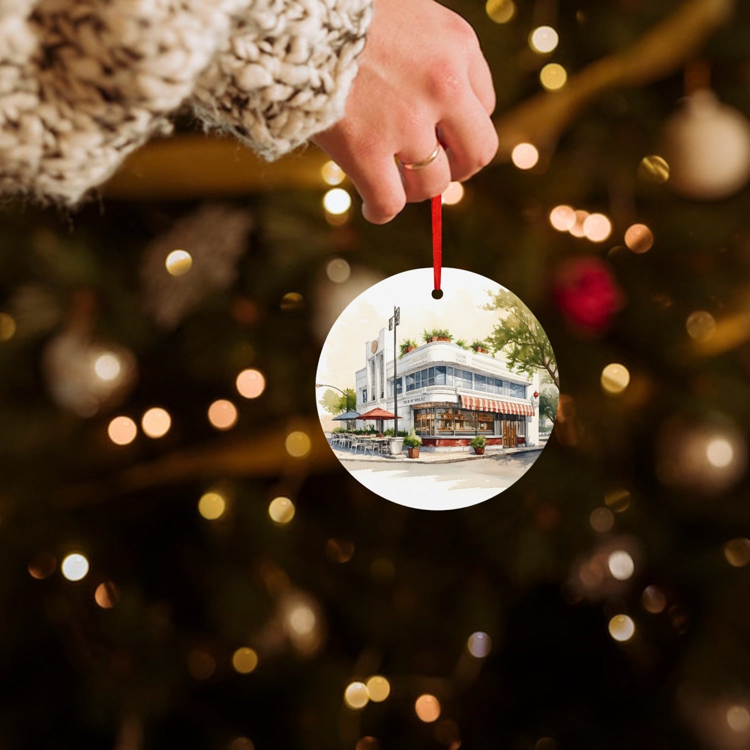 Add some vintage charm to your holiday décor with our MCM Car Hop Design Ornament. This dual-sided ornament features the same high-resolution UV printed design on both sides, ensuring it looks great from any angle. Made from durable aluminum, it measures 3.0''x3.0'', making it the perfect size for any tree or decorative display. Each piece comes with a convenient hanging hole and a red hanging string for easy placement. Our dual-sided printing process ensures vibrant, high-resolution images on both sides of the ornament. The smoothly curved edges prevent accidental cuts or scratches, making it a safe addition to your festive decorations. Ideal for various occasions such as Christmas, ceremonies, or as a unique gift for loved ones, this ornament brings a nostalgic touch to any setting. Celebrate the season with a piece that combines classic mid-century modern design with practical, high-quality materials. Perfect as a gift or a keepsake, this ornament will be cherished for years to come. Packs of 10 and 20 Mixed Designs available as well.