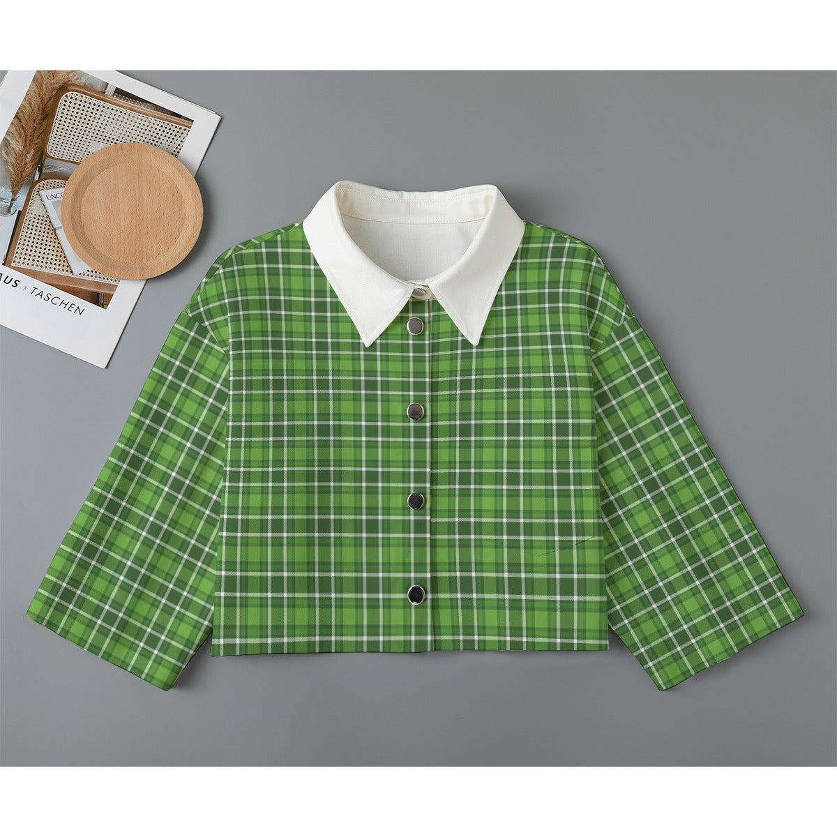 MCM Green Plaid Women's Cropped Jacket - Plaid Short Jacket