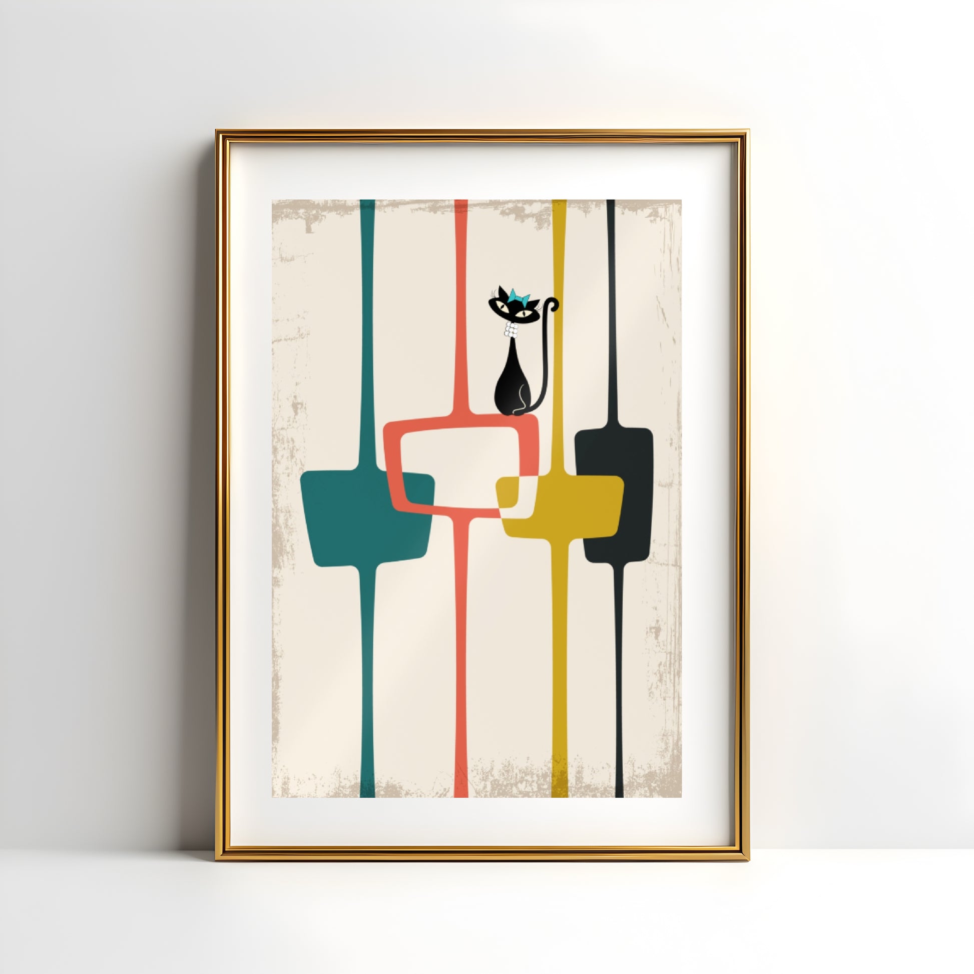 Mid Century Modern Atomic Cat in Pearls Poster