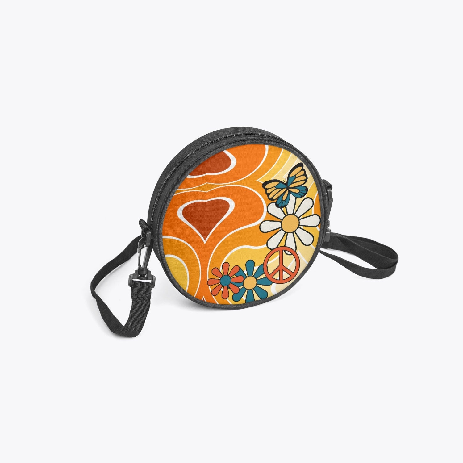 Hippie 70s Peace Sign Retro Round Satchel Bag