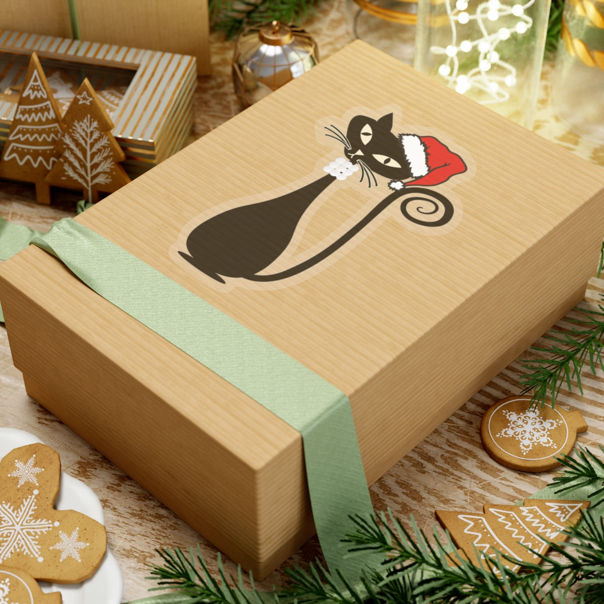 MCM Christmas Sticker, Holiday Atomic Cat Sticker, Black Cat Sticker, Mid Century Modern Cat Sticker, Clear or White edge, Vinyl Sticker