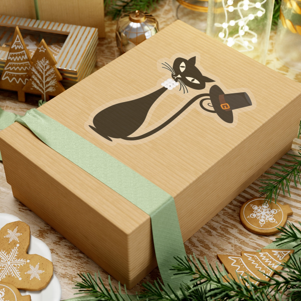 MCM Thanksgiving Sticker, Atomic Cat Sticker, Black Cat Sticker, Mid Century Modern Cat Sticker, Clear or White edge,Vinyl Sticker