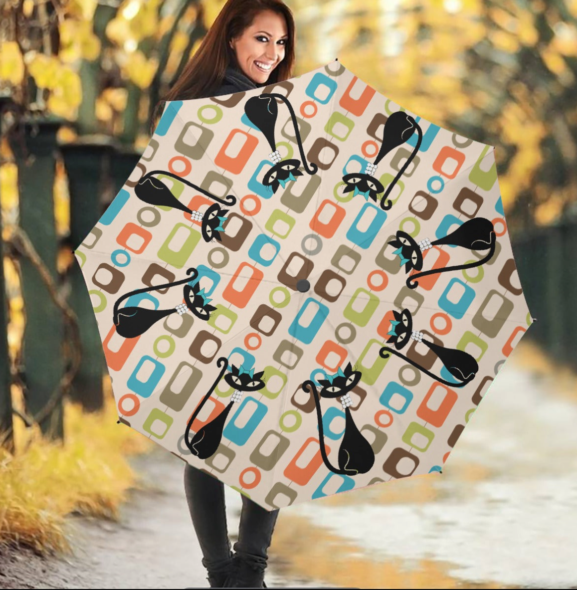 Stay dry and stylish with the MCM Atomic Cat in Pearls Umbrella, a must-have accessory or the perfect gift for any mid-century modern enthusiast.