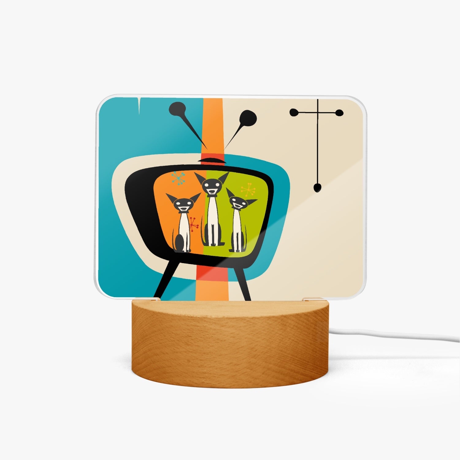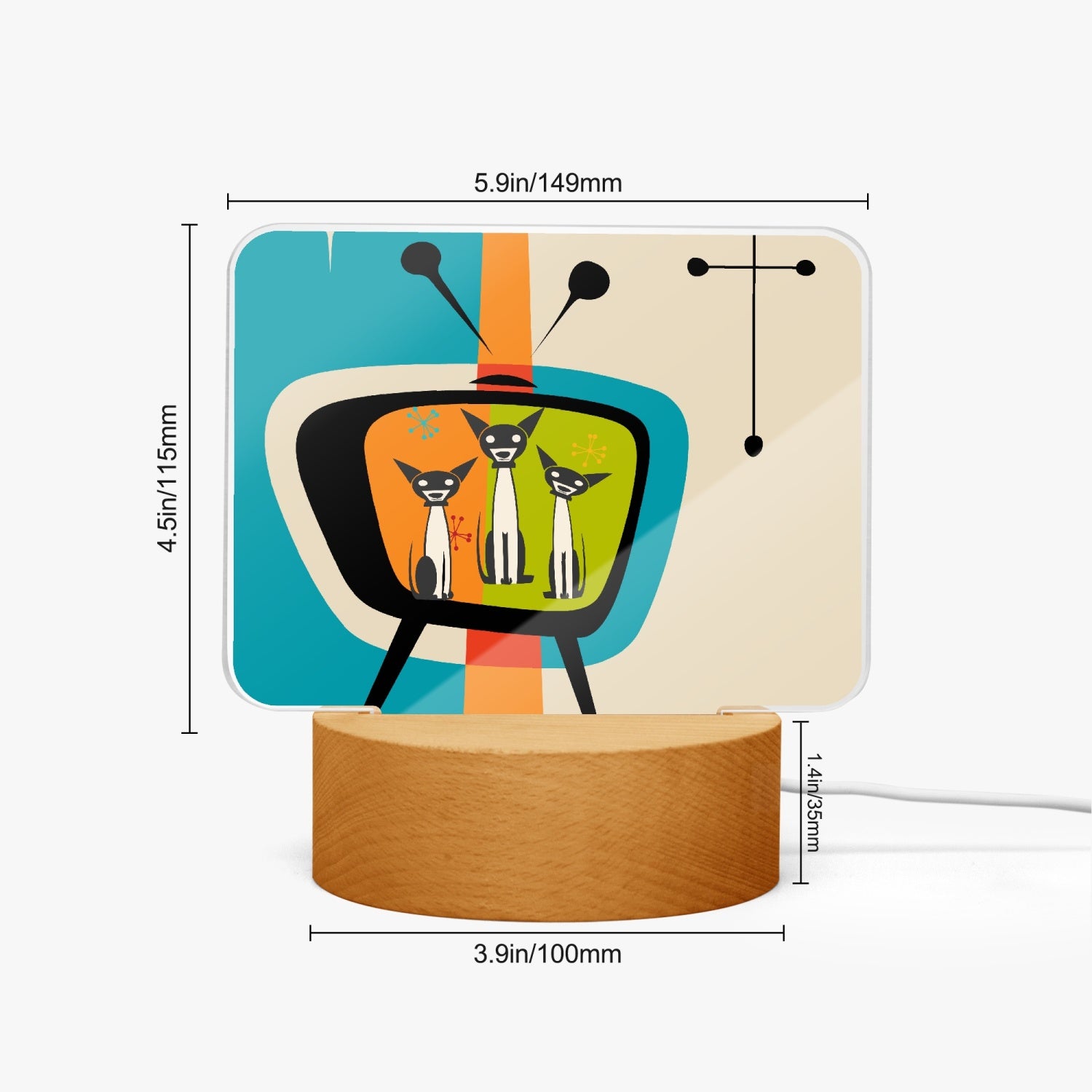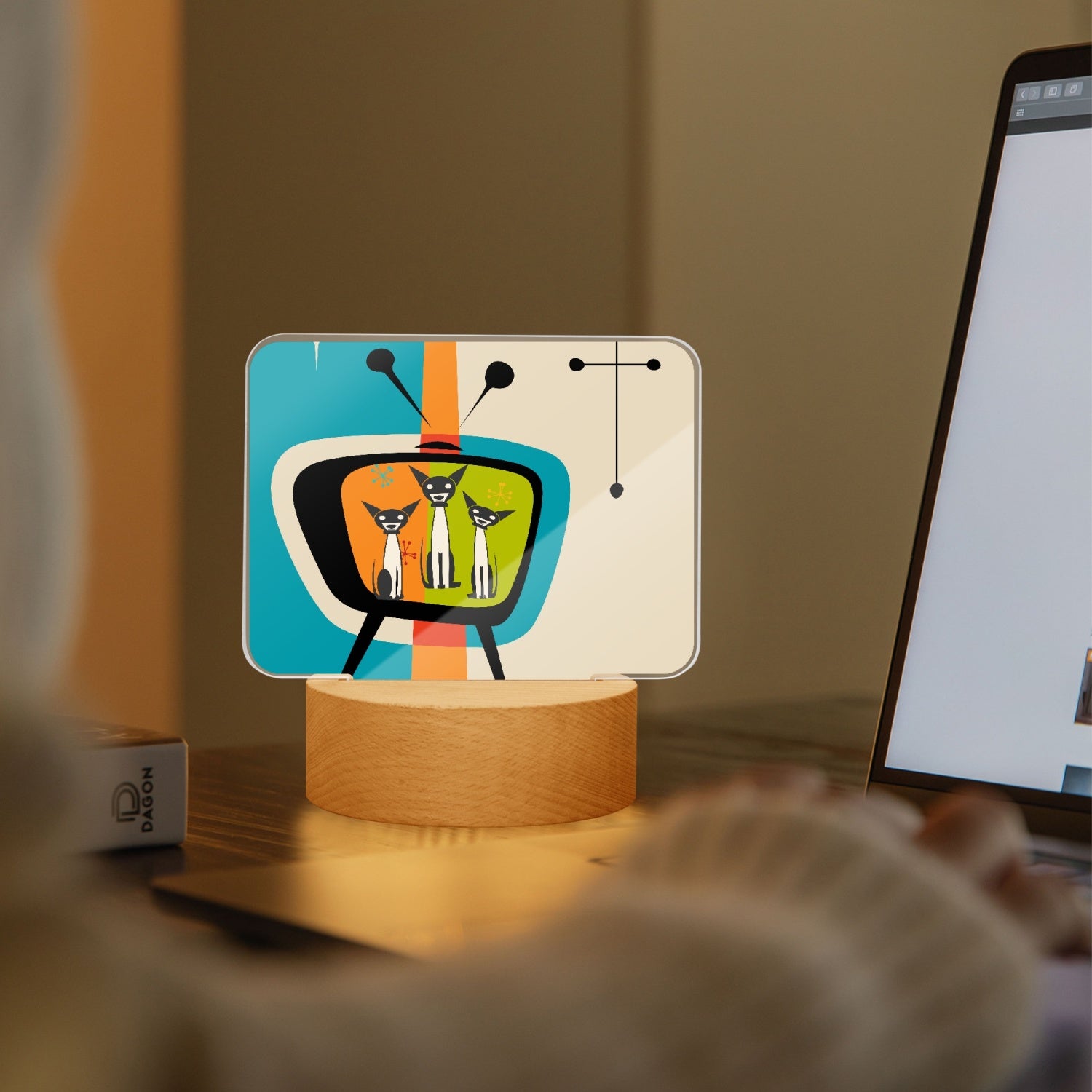 Illuminate your space with retro charm using our MCM Atomic Cat Acrylic Night Light. Featuring UV printing on one side, this eco-friendly night light showcases a delightful atomic cat design that evokes the playful spirit of mid-century modern aesthetics.