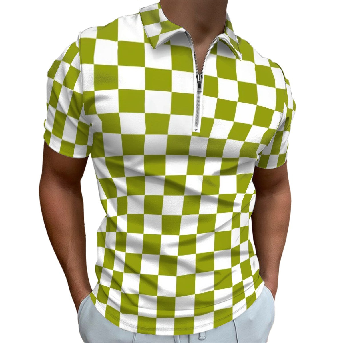 MCM Retro Polo Shirt- Mid Century Checker Design Slim Fit Zipper Polo for men