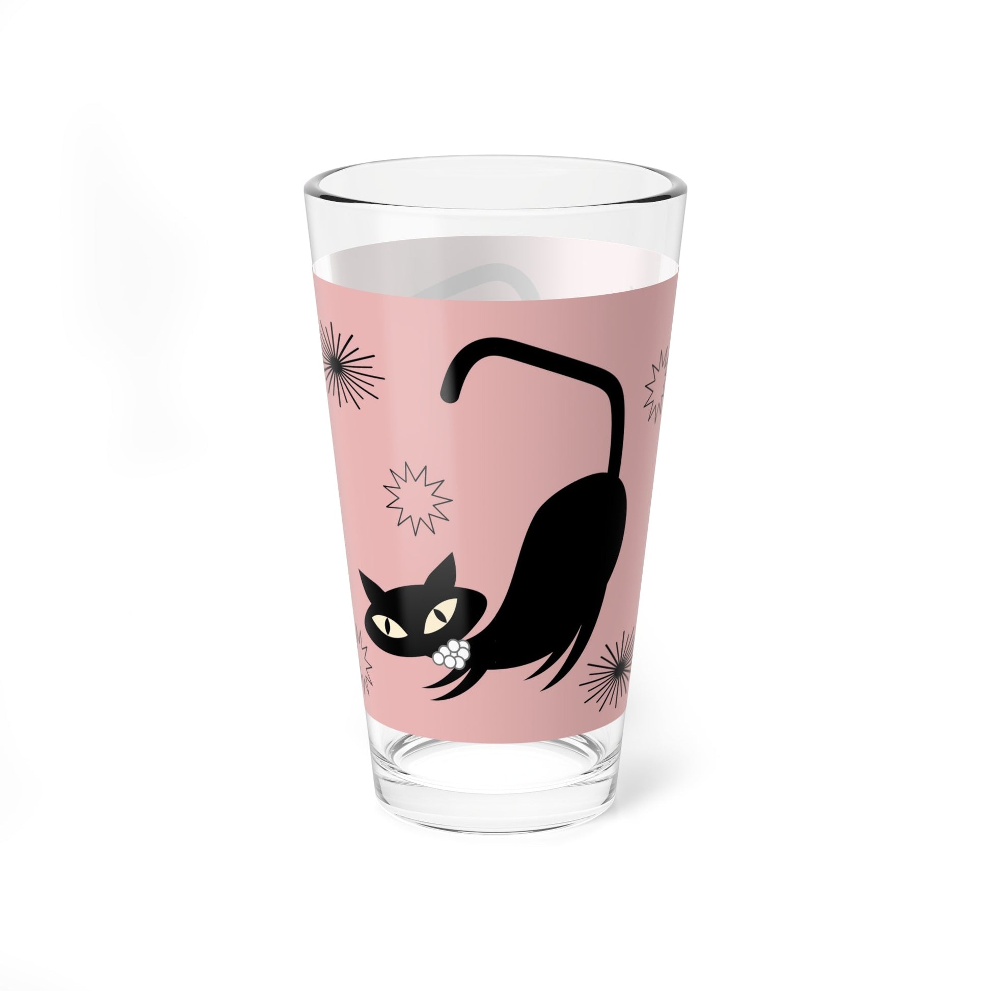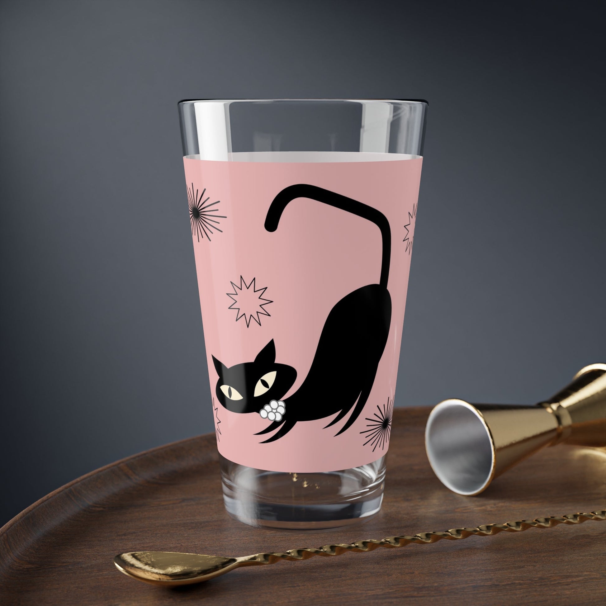 MCM Pink Atomic Cat Glassware 1/2/4 pc Set, MCM Beer Glass, Sexton Cat Cocktail Glass